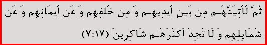 That made him extremely unhappy, so he promised that he would take us away from Allah's straight path (7:16). He said, "Since You have enticed me, i will sit and wait for them on Your straight path." He is really mad and angry, and he is constantly lurking to ambush us.