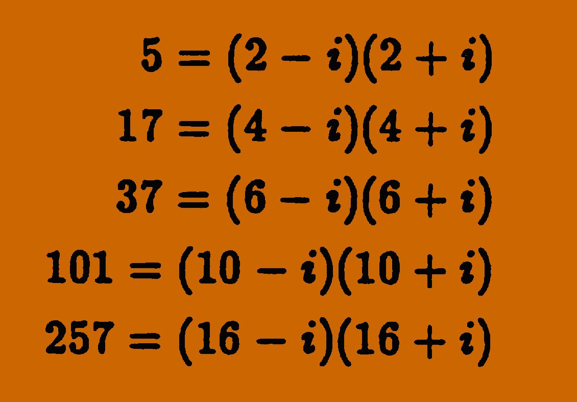 An easy example of a prime factoring into Gaussian integers is the case of primes with the following form. Fermat primes can be considered as a subset of these primes: