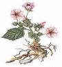 Marshmallow root: Althaea is a genus of 6-12 species of perennial herbs, including the marshmallow plant whence the confection got its name, native to Europe and western Asia. They are found on the banks of rivers and in salt marshes, preferring moist, sandy soils. The stems grow to 1-2 m tall, and flower in mid summer. The leaves are palmately lobed with 3-7 lobes. Althaea species are used as food plants by the larvae of some Lepidoptera species including Bucculatrix quadrigemina. The genus formerly included a number of additional species now treated in the genus Alcea (Hollyhocks). The root contains starch (37%), mucilage (11%), pectin (11%), flavonoids, phenolic acids, sucrose, and asparagine. What does it do? In herbalism mallow is used as a gargle to treat mouth and throat ulcers. It is also useful for gastric ulcers. The flowers and young leaves can be eaten. They are often added to salads or boiled and fried. They are also used in cosmetics for the skin. The root has been used since Egyptian antiquity in a honey-sweetened confection useful in the treatment of sore throat. The later French version of the recipe, called pâte de guimauve, included an eggwhite meringue and was often flavored with rose water. Pâte de guimauve more closely resembles contemporary commercially available marshmallows, which ironically no longer contain any actual marshmallow. The root's emulsifying property is used for cleaning Persian carpets in the Middle East. It is regarded as the best method to preserve the vibrancy of vegetable dyes used in coloring the carpet's wool. |